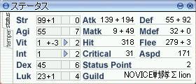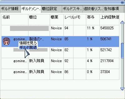 昨日、ギルド人数が上限の20名に達してしまったので、自分のノビ(DEX-LUK)を一人脱退させる。