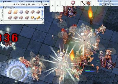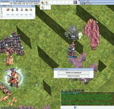 露店用のスパノビも、もう少し位はJobを上げたいなあ・・・とカートを外して狩りをしてみる。