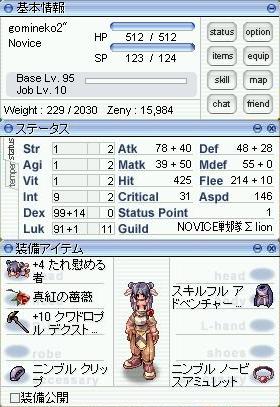 30分後には、DEX-LUKノビがLv93に。