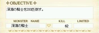 現在の討伐クエストでの深淵の騎士の討伐数は62。