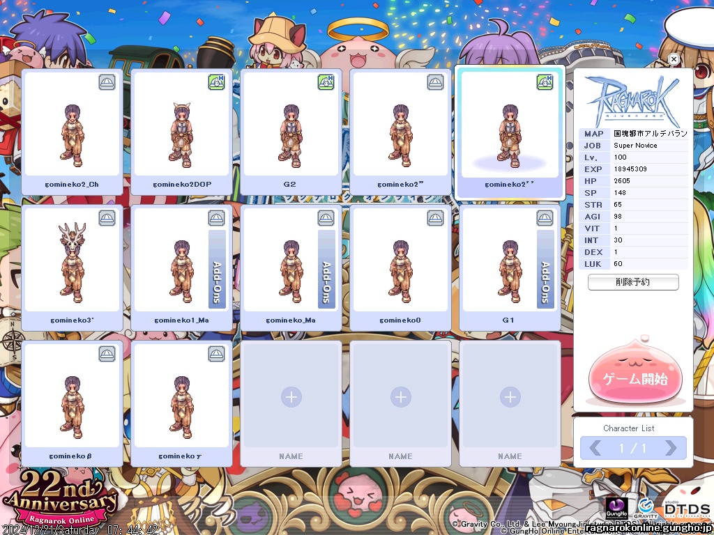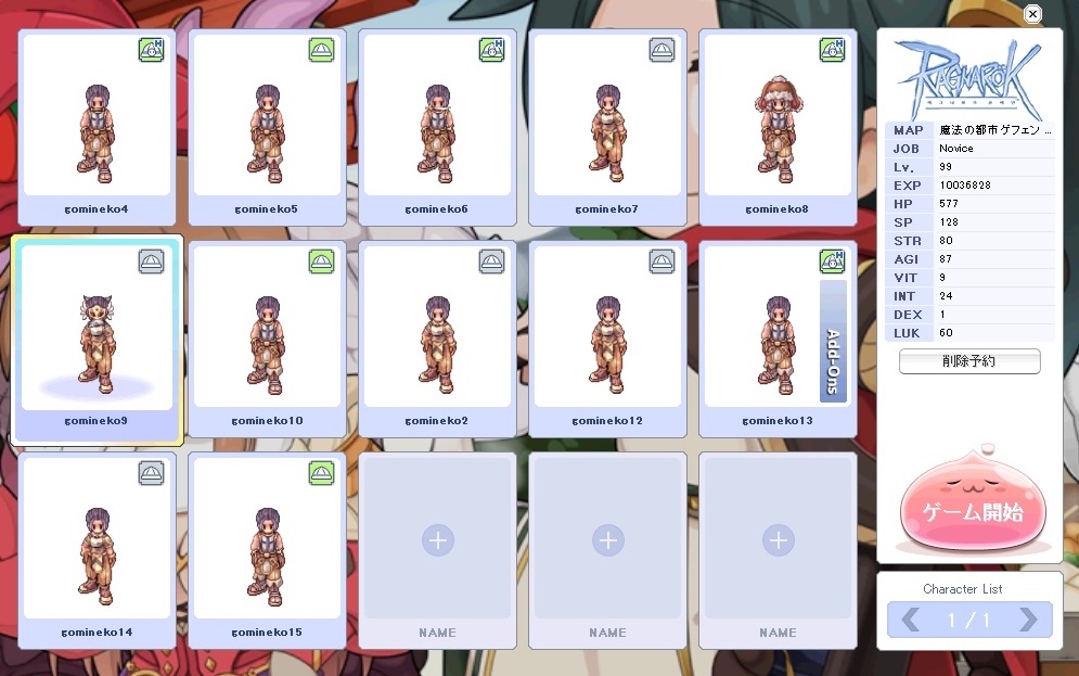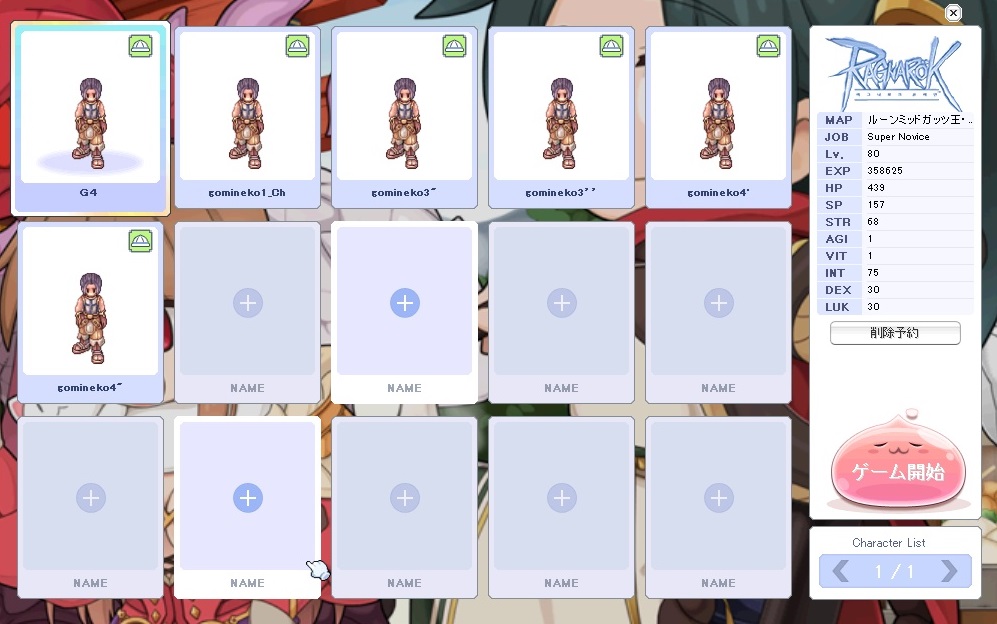 という訳でログインせずにキャラ削除かけて終了(笑)