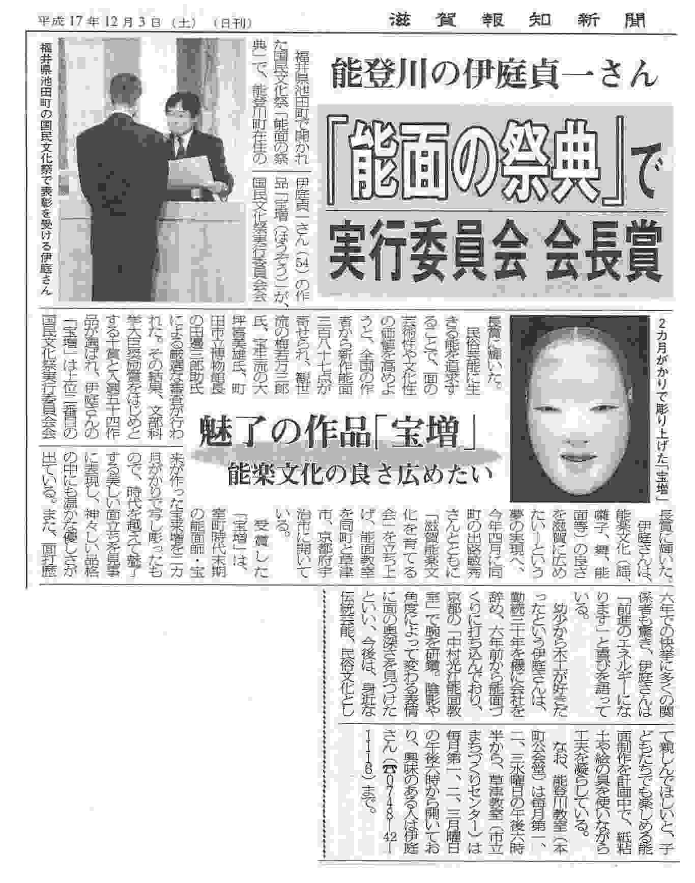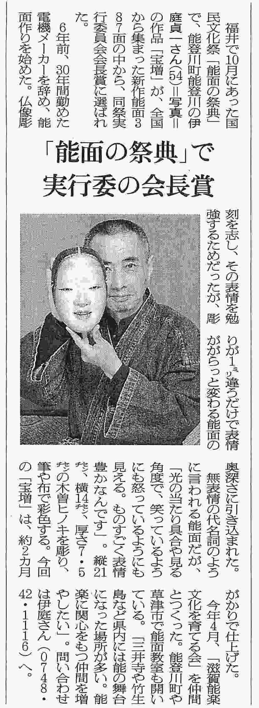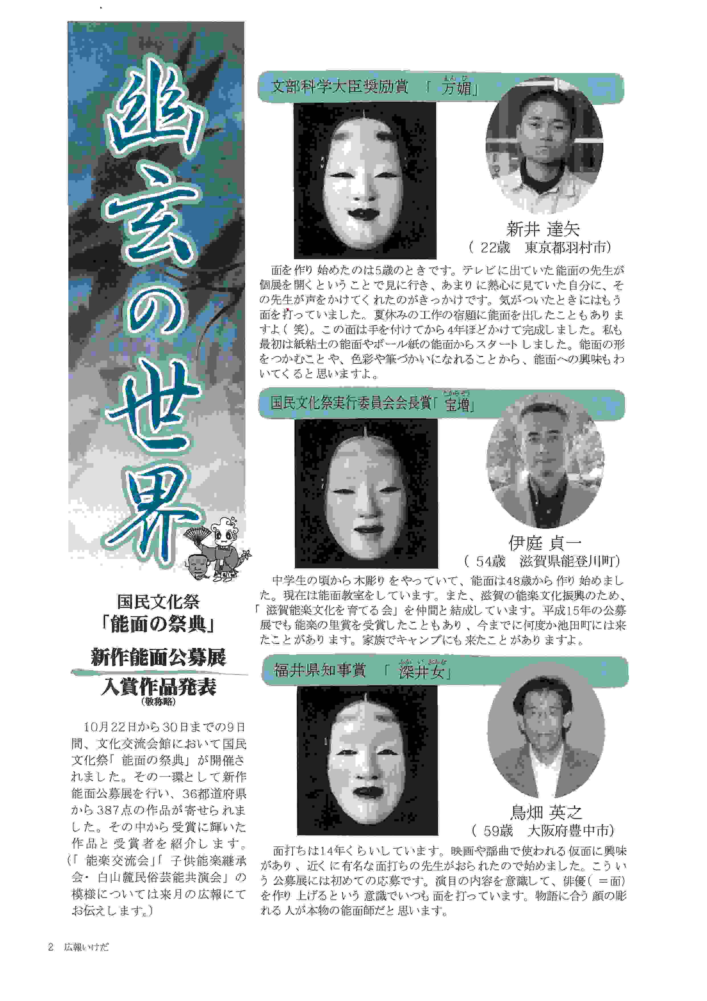 ◇国民文化祭、福井県池田町「能面の祭典・新作能面公募展」にて入賞