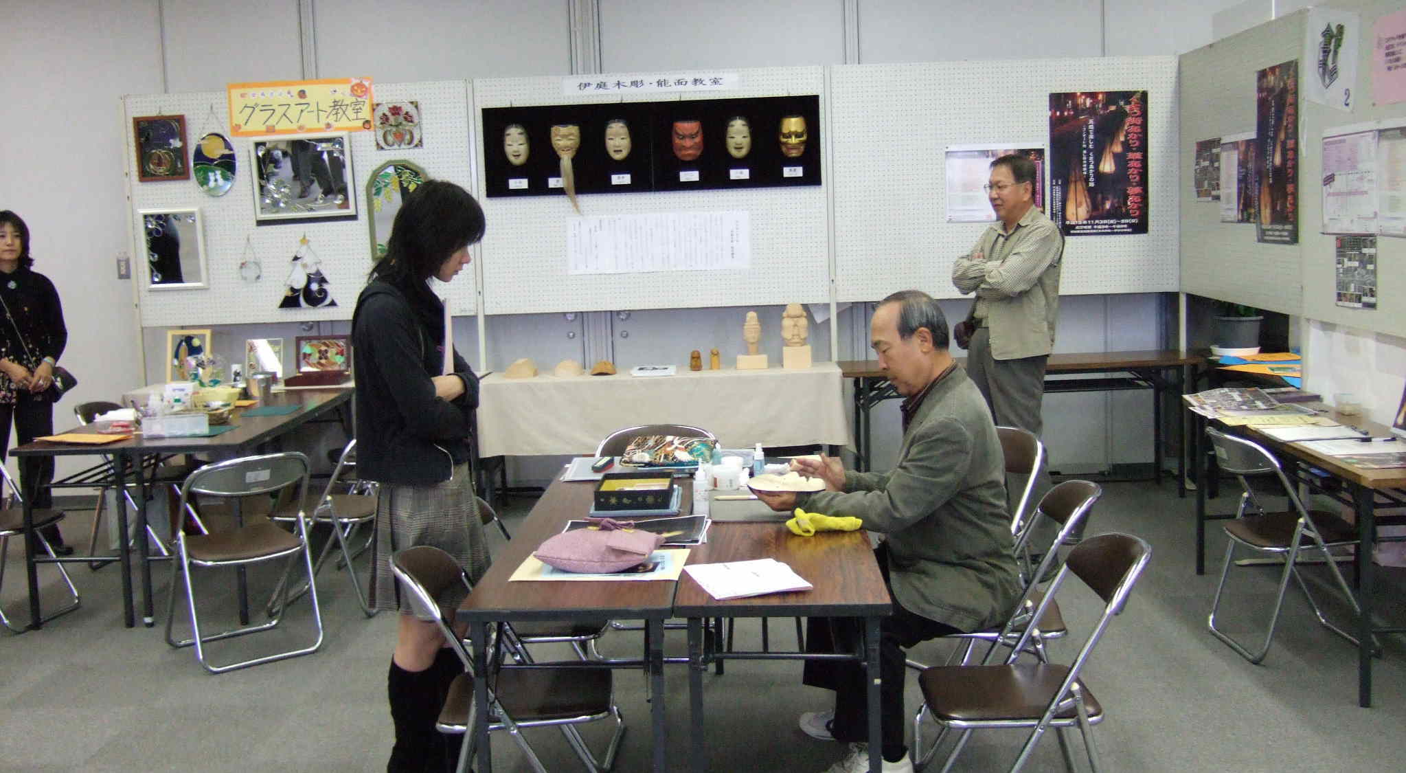 ・草津市「第7回パワフル交流・市民の日」 平成18年10月28日(土) 草津市にて活動するグループが集う「第7回パワフル交流・市民の日」が、草津市役所内にて開催され、伊庭木彫・能面教室も参加致しました。 爽やかな秋の1日、草津市役所内は、大勢の市民が集い、お祭り気分でした。