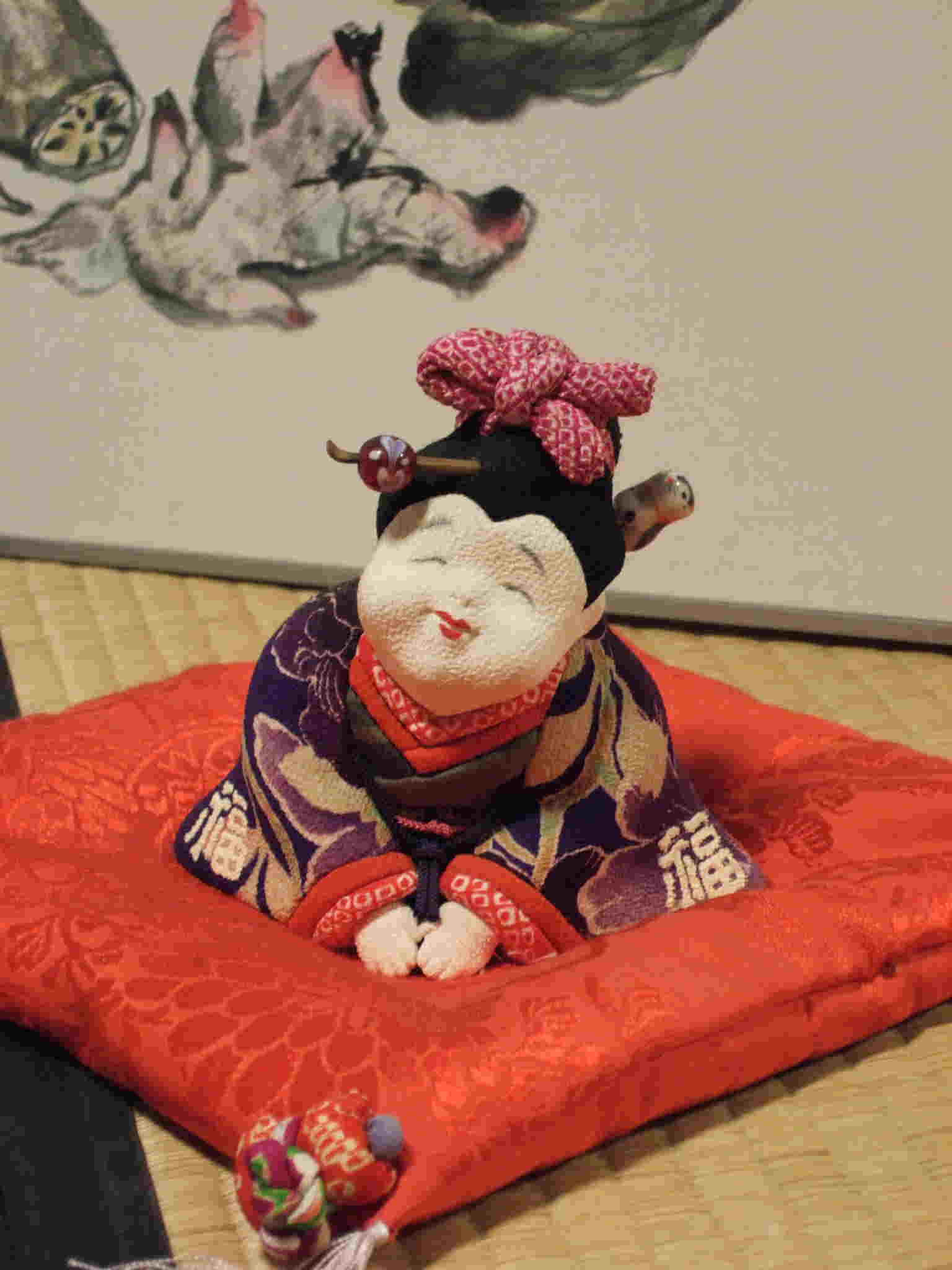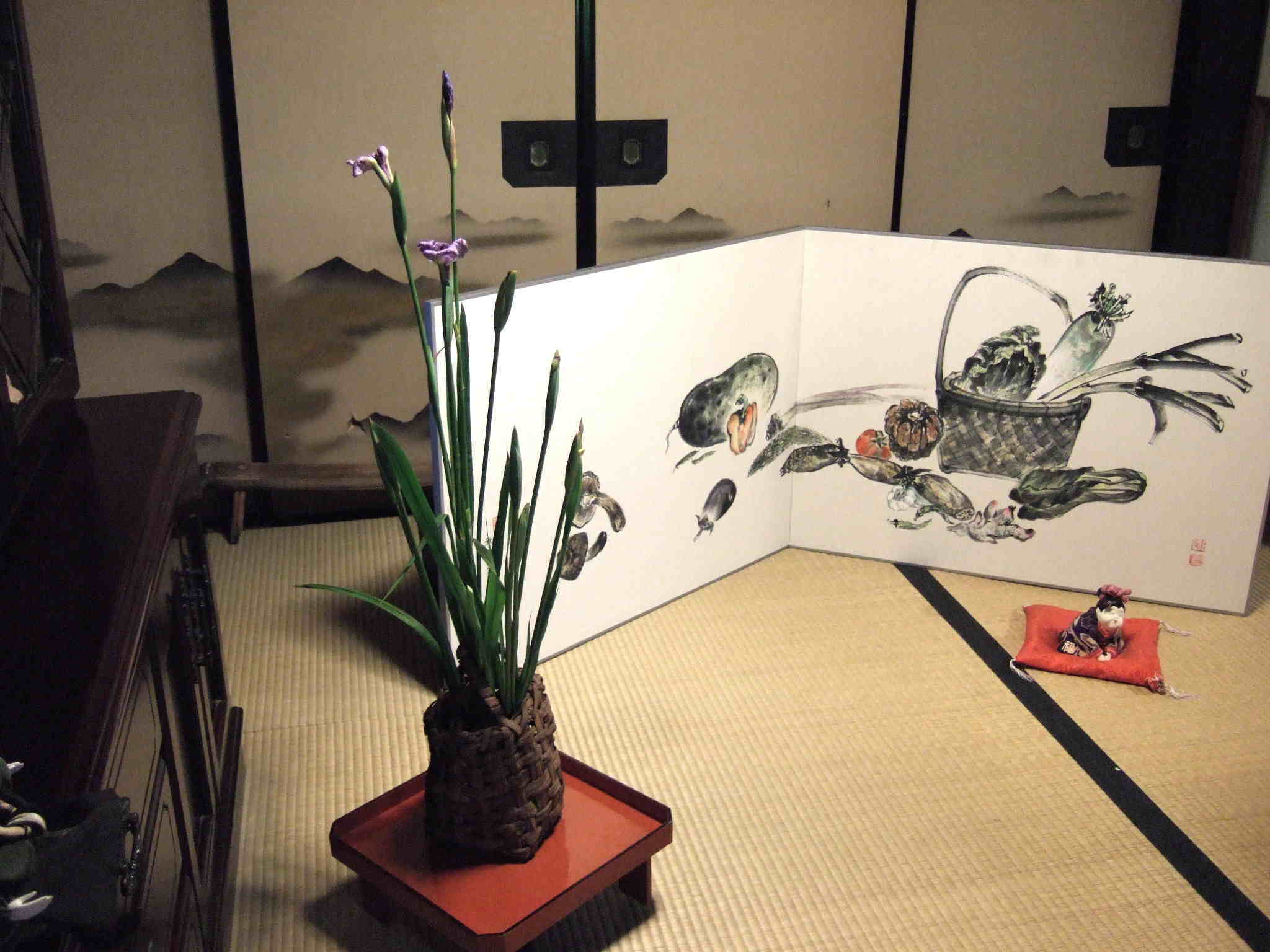 入口では、季節の花や乙人形もお出迎え