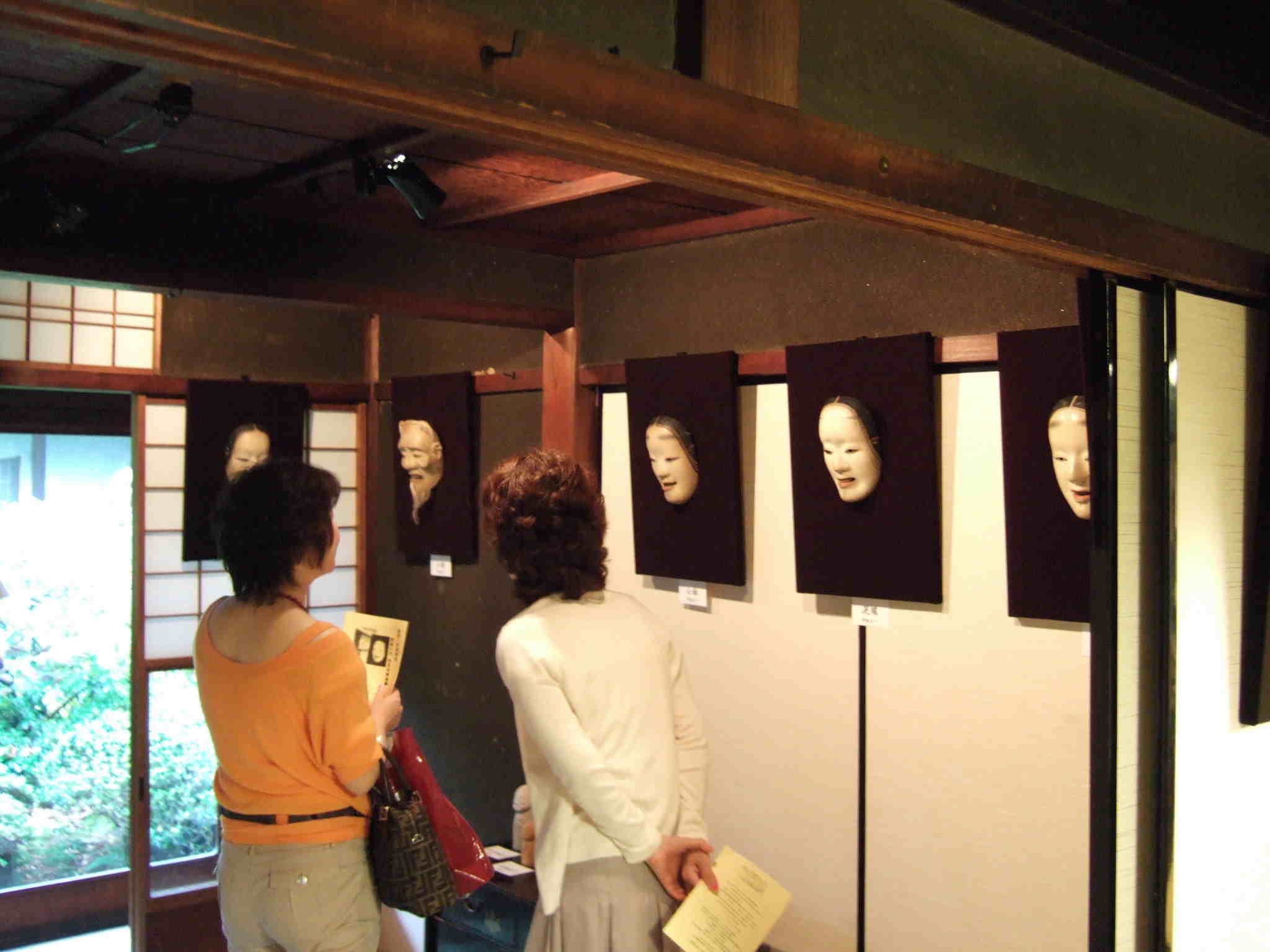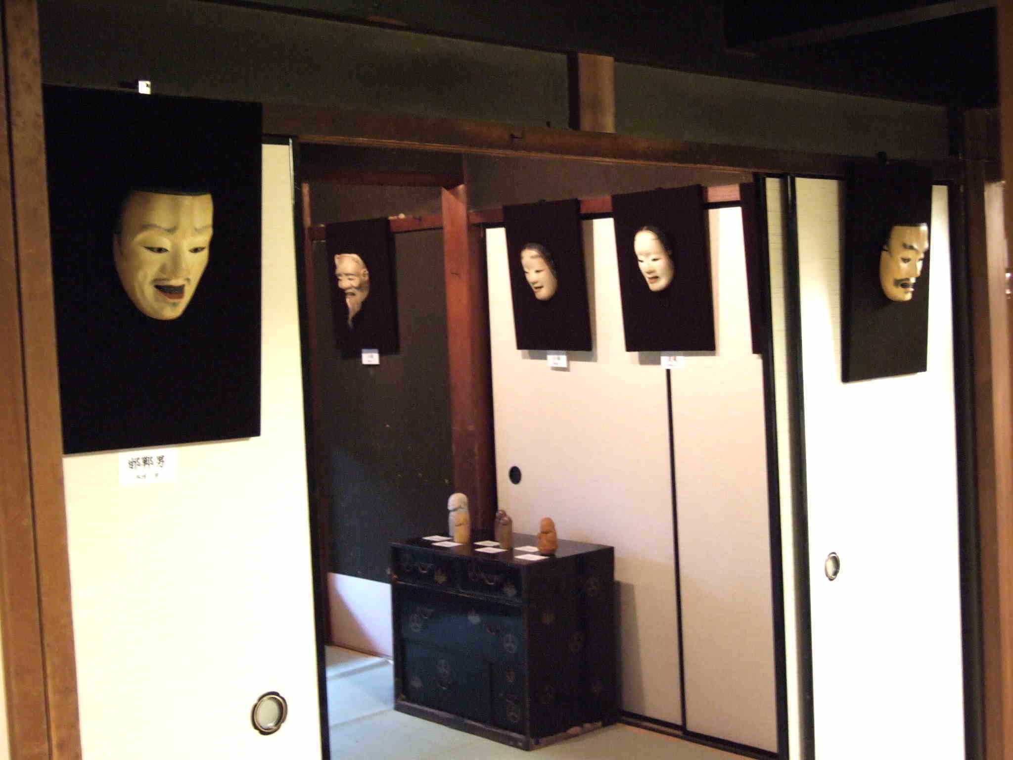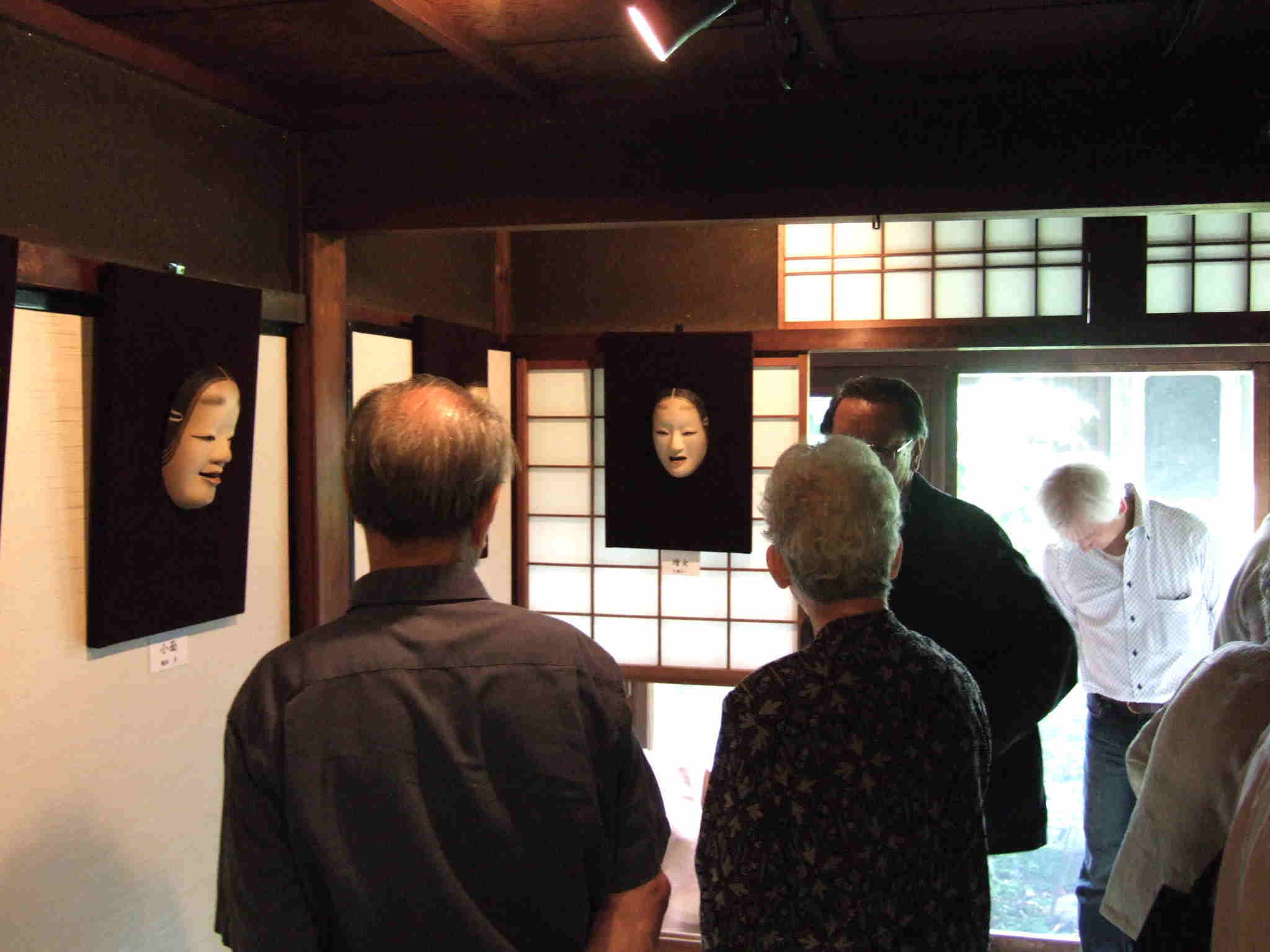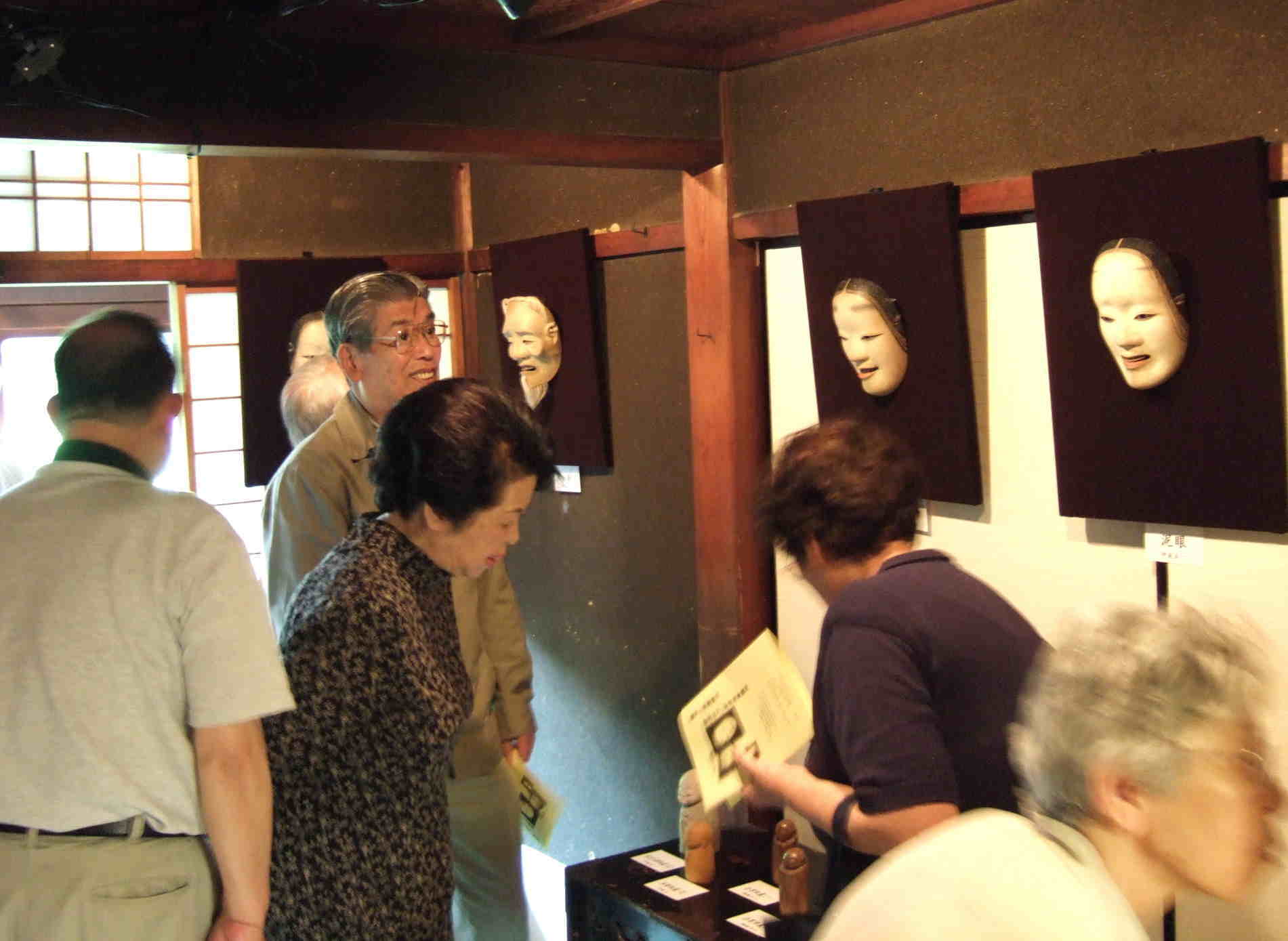 伊庭木彫能面教室の皆さんの作品と講師の