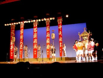 第5回の全国曳山囃子大会は、前日祭として行ったスタンプラリーで、台帳とスタンプの一新。また交流会ではお互いのお囃子による交歓など、初めて交流会らしい交流会が持てました。 当日は、文芸会館前でお客さんに対して「迎え囃子」「送り囃子」を行い、展示室では曳山祭関連グッズの展示を行うなどこれまでにない大会とすることができました。 |