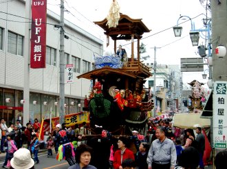 | 車山の側でお囃子のウオーミングアップ 笛は能管を使用 |