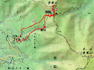 ラ・ネージュの大谷さんから誘いを受けて7日(金)夜から出発して昨年に続き、氷ノ山の山域へ山スキーに行く事になった。先に隣の赤倉山(1,332m)へ登り、滑降で若桜スキー場に下り再度リフトの終点から登り、稜線に取り付き、昨年は雪不足で断念したわさび谷を滑降するという1日で2座の欲深い計画とのことだった。