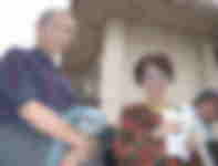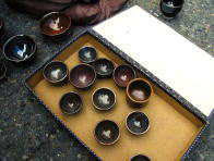 | 東寺の弘法さんの骨董市で皆さんと「さっちゃんのガラクタ屋」のところで集まってくださいました!昨日の雨はきれいに晴れ上がって露天日よりです | 一番乗りはよっちゃんご夫妻 続いて渦福さん おにおにさん 余白さん、ミーコさんご夫妻 時間通りにミッシェルさんが来られてました | おにおに天目茶碗が接着剤となって タイメイ掲示板 あかおに掲示板の常連さんがドッキングしました | 皆さん お土産持参でわいわい 露天見物もして回りました 知り合いの店も紹介しあいました こうたりやさんの店や あの店も行かれました |