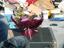 | 2001年11月で露店閉店しました よっちゃんご夫妻が花束を持って天神さんに来て下さいました 感謝! |
