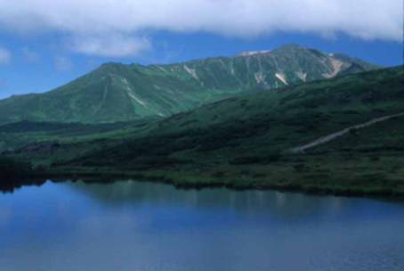 ロープウェイの駅からほとんど標高差の無い散策道をしばらく歩き、そこに咲く草花や風景を楽しみました。緯度も標高も高いのでチングルマ、リンドウ等が咲いていて、雪が残っているところもありました。