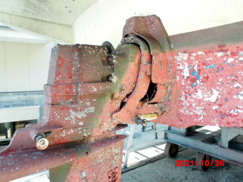 リフトですこし浮かせて、船台に接触していたところに船底塗料の塗布