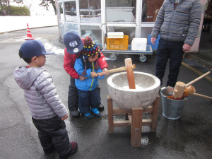 | 1月11日(日) 12時頃~ きねでついて頂くお子さんは先着20名 虹の家窓口にて 9:00から受付 つきたてのお餅は お子さんにふるまいます! ![]() |