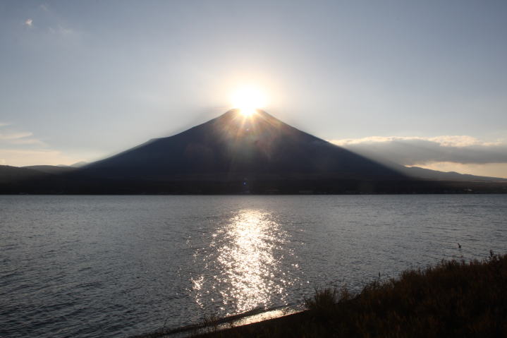 撮影位置からは朝日と富士山の角度は120度ほどあります。