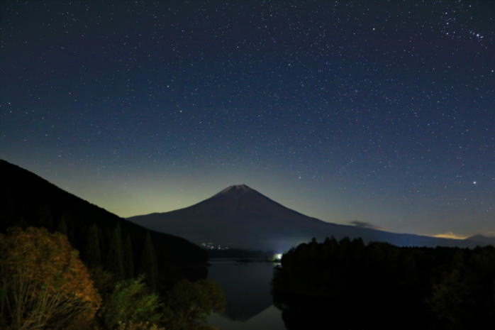 山は雲に覆われていましたが月の出時には、雲が途切れました。