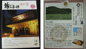 2010年7月JTBパブリッシング男性購読雑誌『ノジュール7月号』に、「青春18きっぷっとおトクなきっぷで 夏のローカル線の旅―現存天守と名城をめぐる列車旅」と題し、安土駅前の信長にちなんだ最中『まけずの鍔』が掲載されました。 |