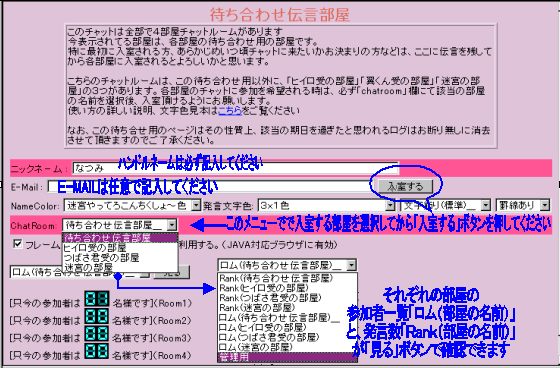 初期画面では「待ち合わせ伝言部屋」が表示されるようになってます