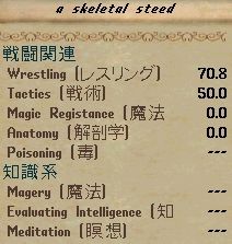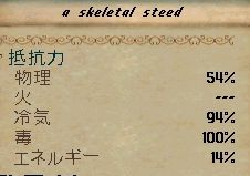 ネクロで作れる骨馬。 ステータスはこんな感じ。名前からして、火馬の死体から作成?制限時間ありらしいけど全然消える気配ありませんでした。