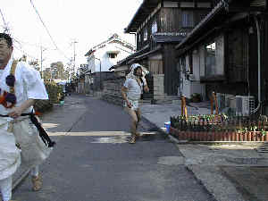 行者役が毎年1月(寒の入り)寒空に、フンドシにワラジという出で立ちで、1年の無病息災を祈り各戸の軒先に出されたバケツの水(中には南天の葉っぱが入っている)をかぶり、町内を1周します。