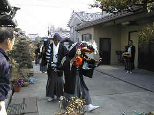 この獅子舞は、三重県無形文化財にも指定されている歴史のあるもので、この獅子舞に頭を噛んでもらうと1年を健康で過ごせるといわれています。