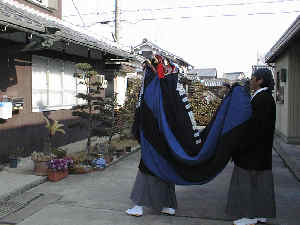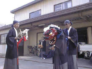 毎年小田町へは、森本忠太郎組がお越しになります。獅子舞が来ると町内はお囃子の笛が響き渡ります。