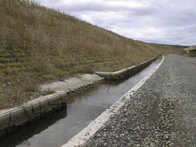 また、工法についてもただのコンクリートの三面張りでなく、擁壁側面にはたくさんの深い溝が掘られていたり、亀やホタルの幼虫等水辺を行き交う生物が出入りし易いように約20メートルおきに法面に斜路を設けるなど実にたくさんの工夫をしていただきました。今後は生物たちがその環境で自然に増殖していってくれるのを待つだけです。