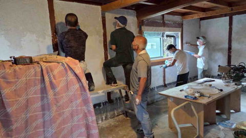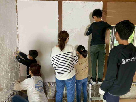 新堂学舎の壁塗りを始めました 2025.10.4