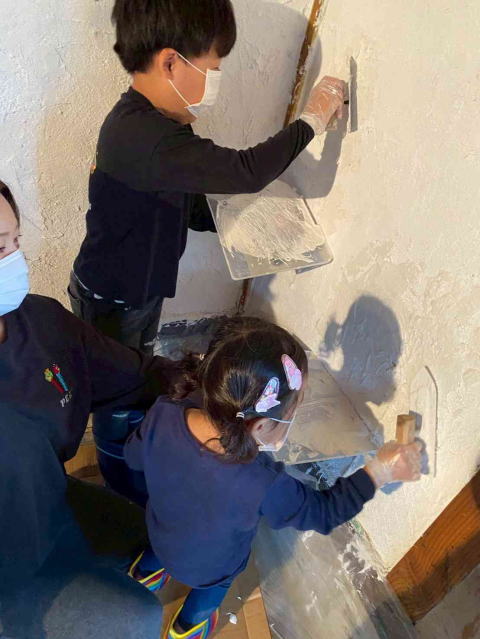最初は要領を得ず困惑しながらの作業だったものの、5分もしないうちに子どもたちからスラスラとコテで撫ぜる音がしてきました。
