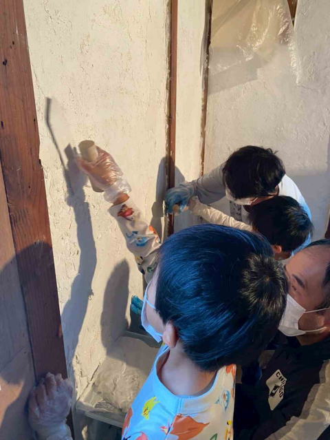 上塗りに際しては、北里学区内での募集をして4組の親子にご参加いただきました。