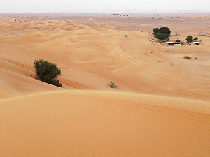 ドバイの市街地から南へ車で1時間ほど走ると砂漠地帯に入ります。
