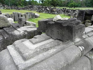 土の丘の周囲に石を積み上げた寺院です。全体はピラミット状で、・方形の基