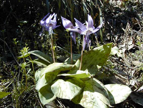 | 4月6日木曜日(晴れ)カタクリ咲いたよ〜〜♪ 花の色がちゃんと写ってなくて残念〜(T.T) まだ開いたばかりなので、ほんとは鮮やかなブルーピンクなんだけど〜 |
