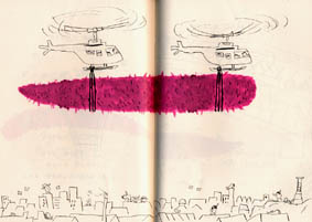 食べたあと、おいもは おなかの中でどうなる? そうです!!そのガスをどうする〜? なんと、子どもたちは宇宙船になって宇宙遠足へ・・・ 夕焼け雲に乗ってか〜えろ(^0^)/〜 |
