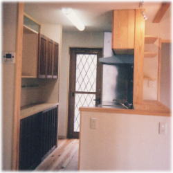 ![]() キッチンや洗面台は、大工さんたちの 手作りです。 オーダーメイドで少し高くつきますが、 自分サイズのキッチンで、使いやすい かと思います。 |
