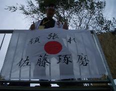 今回は琢磨選手の応援を目的としてまして、自作の琢磨ハッピや横断幕を