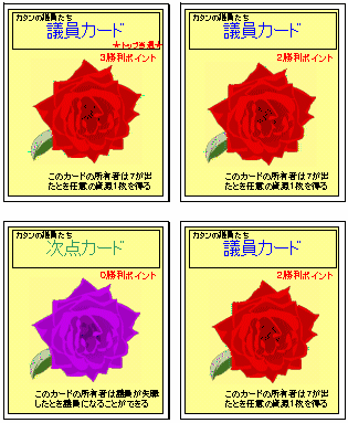 します。得票数の上位2名が議員に当選し議員カードを受け取ります。それぞれ