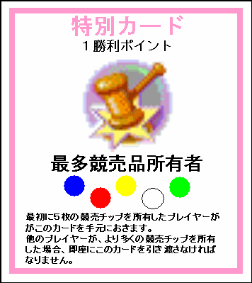 ・落札して保有するチップが5枚以上で単独最多のとき最多チップ保有者として1ポイン